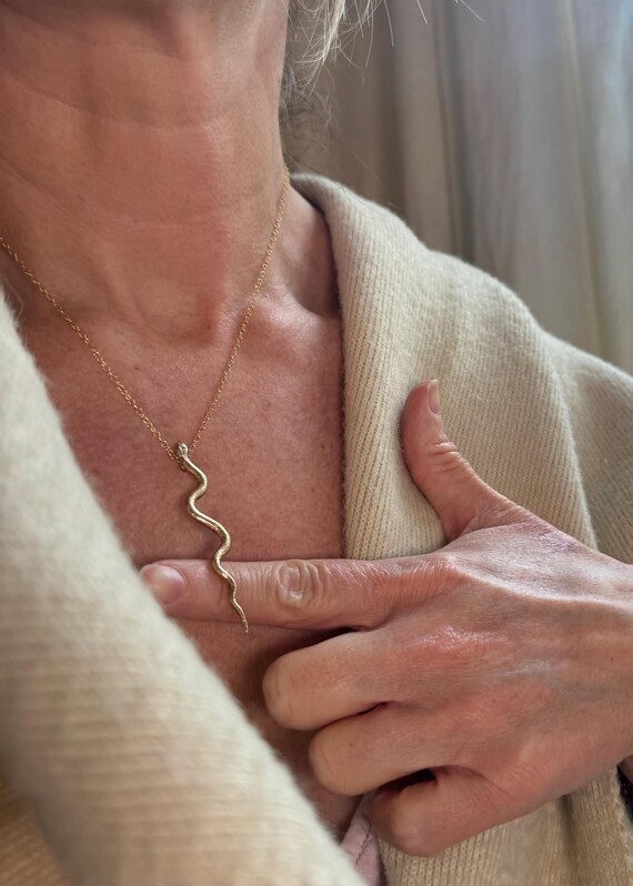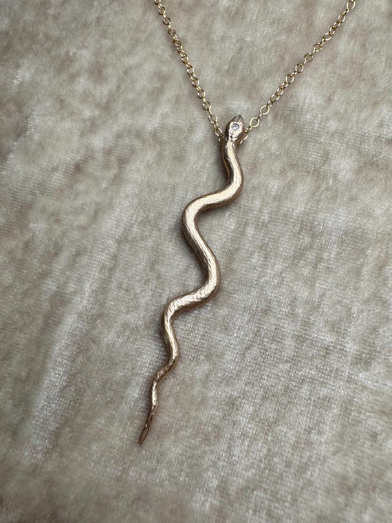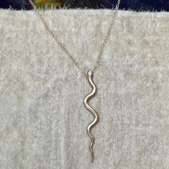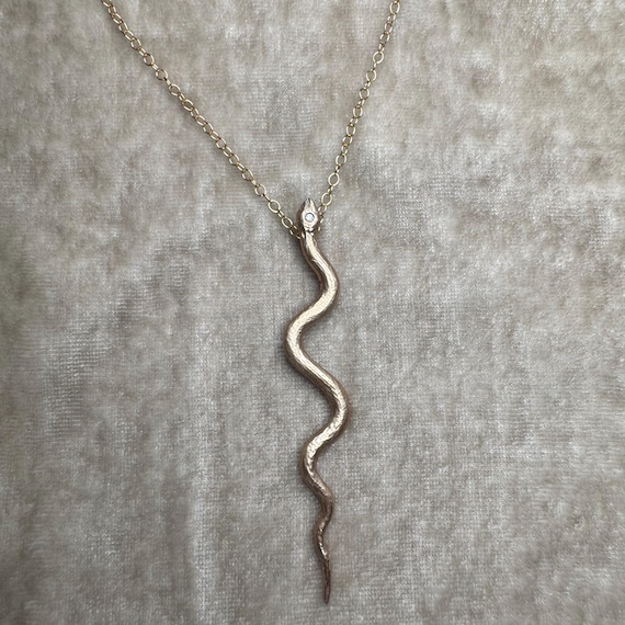 Bronze serpent necklace with cz accent and 14k gold filled chain