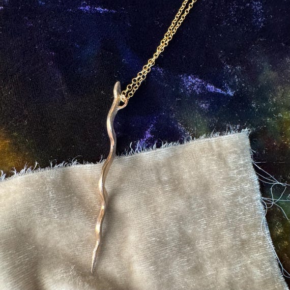 This golden bronze, textured serpent features a tiny sparkling cz on its forehead and is suspended from an adjustable 16-18” gold filled chain.