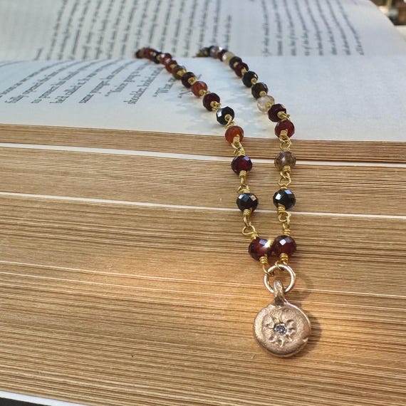 The Autumn Mist necklace-garnet and bronze pendant necklace